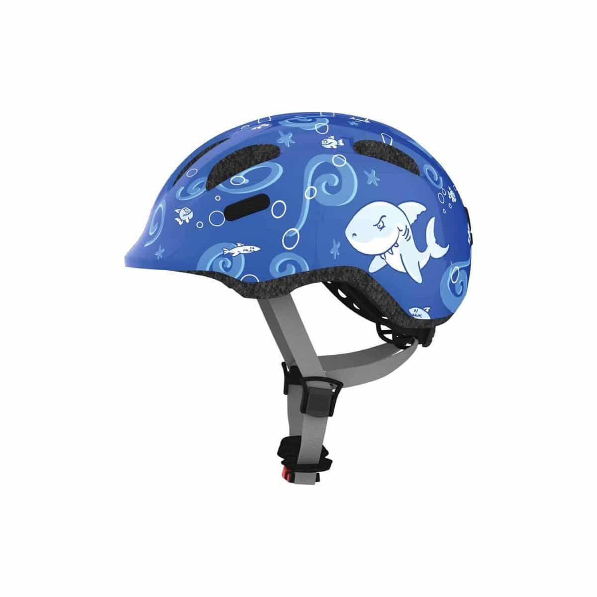 De Abus helm Smiley 2.0 Blue Sharky S 45-50cm is de perfecte helm voor kleuters met loopfietsen of als passagier in het kinderzitje op mama’s op papa’s fiets. Met de licht vlak aflopende achterkant van de helm zit het kind ontspannen en comfortabel in het kinderzitje. Een ongecompliceerde startershelm voor kinderen met fantasierijke decoraties en met grote reflector. Abus in-mold helmen zijn goed geventileerde helmen waarvan de buitenschaal permanent met het EPS verbonden is. Zij worden gekenmerkt door een laag gewicht en een slank design. Deze helm beschikt over een speciaal insectengaas, wat uitgebreide bescherming biedt tegen insecten.