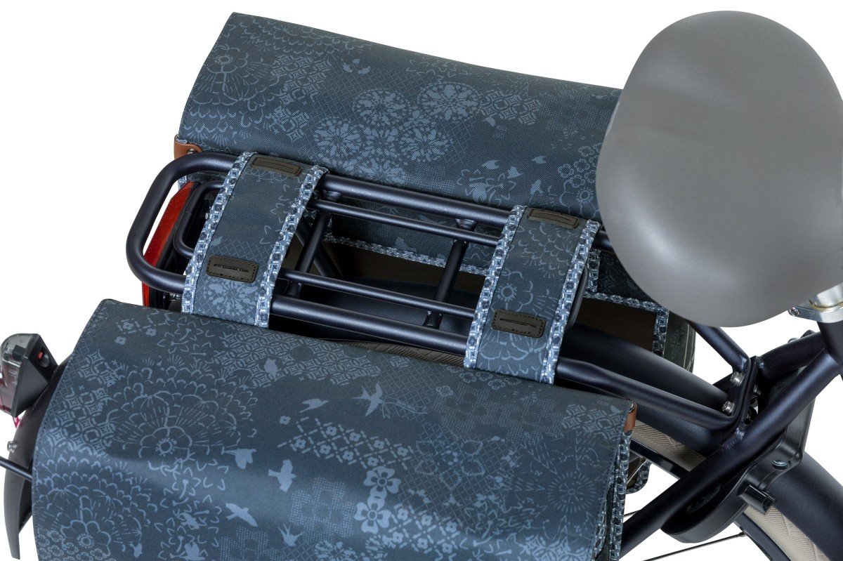 Basil Boheme, dubbele fietstas, waterafstotend polyester, binnenvoering, kunstleren details, aansnoerkoord, Universal Bridge system (geschikt voor MIK, Racktime platen (apart verkrijgbaar)), reflectie op alle zijden, 35L, indigo blauw