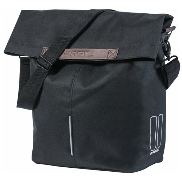 Basil Shoppertas City. Shopper, gemaakt van polyester, waterkerende vouwsluiting met magneet, inclusief afneembare schouderband, vegan leder handgrepen, binnenvak met rits, bevestigingsmogelijkheid LED, Hook-On System, reflectie op alle zijden, inhoud: 14-16L, Black.