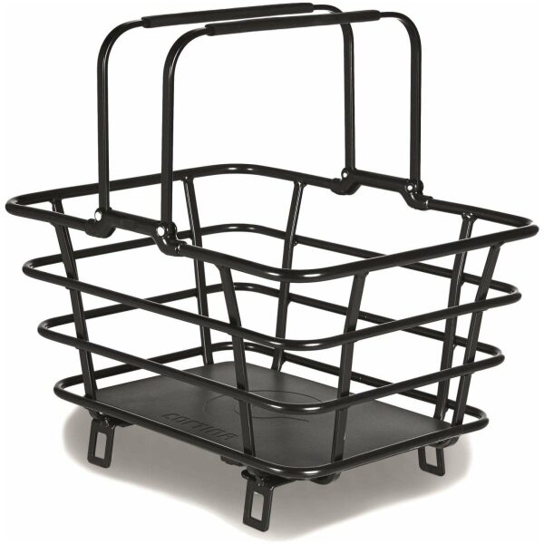 Cortina Mand Delhi AVS zwart. Mat zwarte mand met kliksysteem geschikt voor AtranVelo System (AVS) met platte soft grip handvatten in mat zwart. Passend op de Cortina Common voor- en achterdrager en de E-Octa achterdrager. Gemaakt van licht aluminium en kunststof bodemplaat. Afmetingen lxbxh 29x40x20cm inhoud 23L gewicht 1,5kg. Max 10kg. Indien de bagagedrager niet is voorzien van het AVS systeem dan moet er gebruik gemaakt worden van de AVS adapter (bij te bestellen met AVS174941).