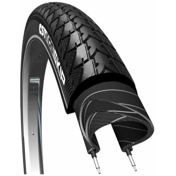 CST buitenband Skip R Zwart 20×1.75/47-406. De Skip is een typische kinderband voor kinderfietsen en jong volwassenen die niet van de harde paden afwijken. Voor gebruik op de vlakke weg en uitermate geschikt voor stadsfietsen met een sportieve uitstraling