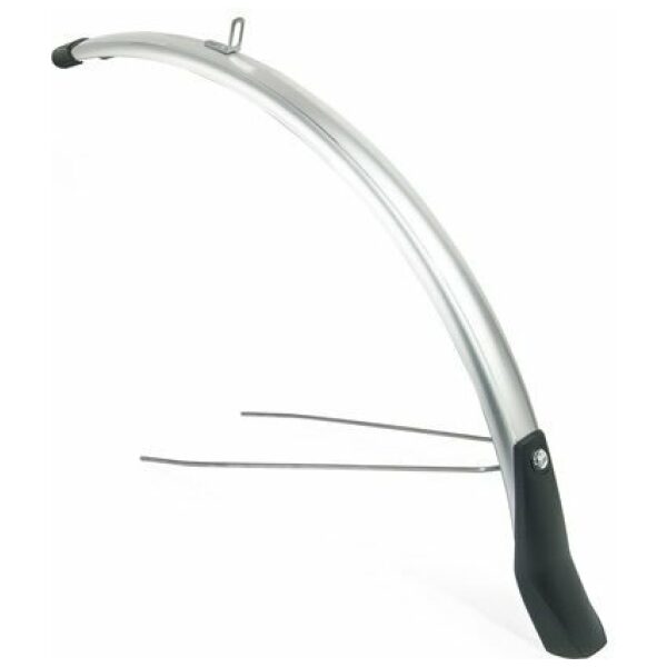 Eurofender voorspatbord Snello 28 inch inclusief stang,spatlap en bevestigings knop zilver 46 mm, oa gemonteerd op Batavus Gazelle en Giant