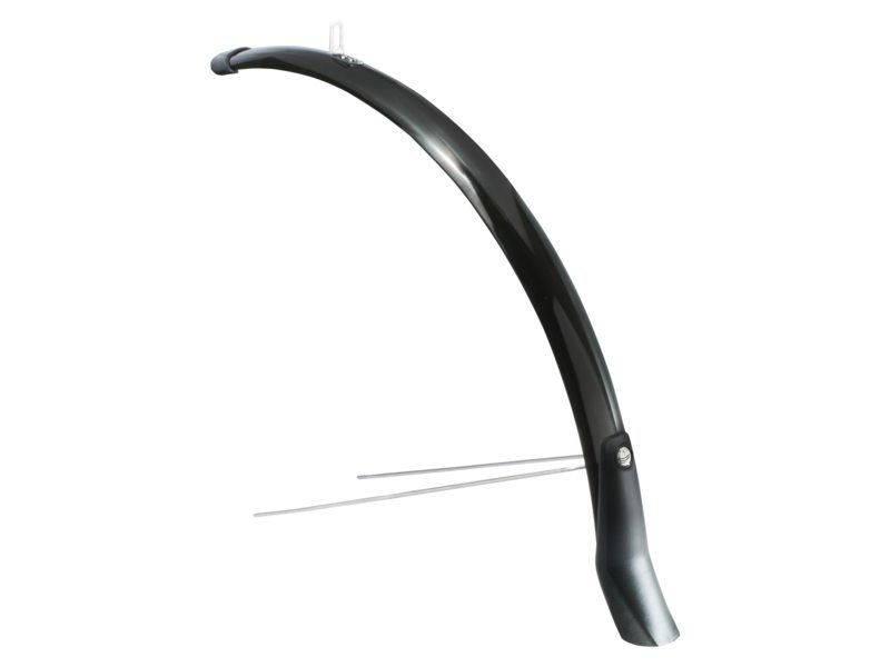 Eurofender voorspatbord Snello 28 inch inclusief stang,spatlap en bevestigings knop zwart 51 mm, oa gemonteerd op Batavus Gazelle en Giant