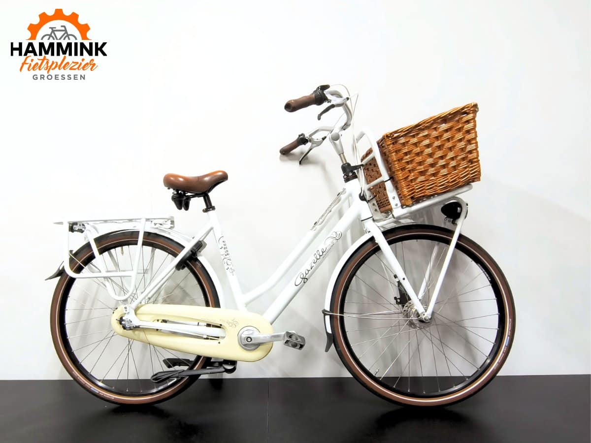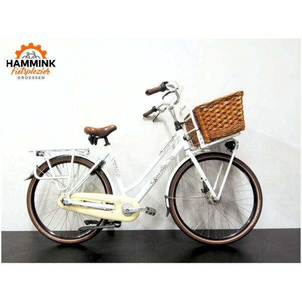 Een tweedehands Gazelle Miss Grace met een framehoogte van 54 cm. Deze Gazelle heeft 3 versnellingen, mandje voorop, stuurslot en een dubbel standaard. Je ontvangt 3 maanden dealergarantie op deze stadsfiets.