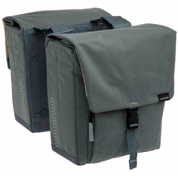 Een tas met inhoud, gemaakt van waterafstotend, 100% gerecycled polyester. Een functionele tas die geschikt is voor intensief gebruik. Deze dubbele tas biedt veel opbergruimte met 2 ruime hoofdvakken. Ook heeft deze tas aan beide zijden extra ritsvakken om al jouw spullen veilig mee te nemen. Je bevestigt de tas aan de bagagedrager door middel van riempjes, dit maakt de tas geschikt voor vrijwel alle fietsen. De tas heeft reflectie aan beide zijden, waardoor je altijd veilig onderweg bent