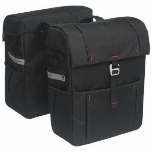Een tas met inhoud, gemaakt van waterafstotend, 100% gerecycled polyester. Een functionele tas die geschikt is voor intensief gebruik. Deze dubbele tas biedt veel opbergruimte met 2 ruime hoofdvakken. Ook heeft deze tas aan beide zijden extra ritsvakken om al jouw spullen veilig mee te nemen. Je bevestigt de tas aan de bagagedrager door middel van riempjes, dit maakt de tas geschikt voor vrijwel alle fietsen. De tas heeft reflectie aan beide zijden, waardoor je altijd veilig onderweg bent