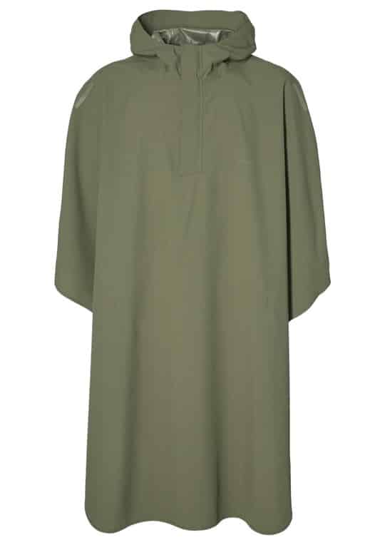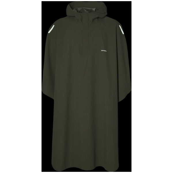 Verstelbare driedelige capuchon met verstevigd klepje. Drukker op schoutderhoogte maken het mogelijk om mouwen te creren. Ruime (voor)sluiting, waardoor de poncho makkelijk aan te trekken is. Achter de rits zit een regengootje voor het afvoeren van water. Heupbanden en handlussen tegen het opwaaien. Ruimte voorzijde ter bescherming van benen. Ton sur ton reflextie voor extra veiligheid.