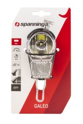 Spanninga koplamp Galeo XB, batterij, aan/uit knop, 4 Lux, 1 LED, 2 x AA batterijen, levensduur batterij > 40u, batterij-laad-indicator, gewicht < 95g, geschikt voor montage op de voorvork