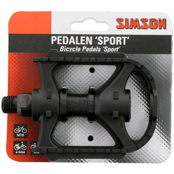 De Simson pedalen Sport zijn ideaal voor de sportieve fietsen en met name geschikt voor een MTB, tourfiets of E-bike. Deze Lichtgewicht kunststof pedalen, met een grof profiel voor extra grip, zijn aan twee zijden voorzien van geïntegreerde goedgekeurde reflectoren. De pedalen zijn te monteren met behulp van een Simson pedaalsleutel.
