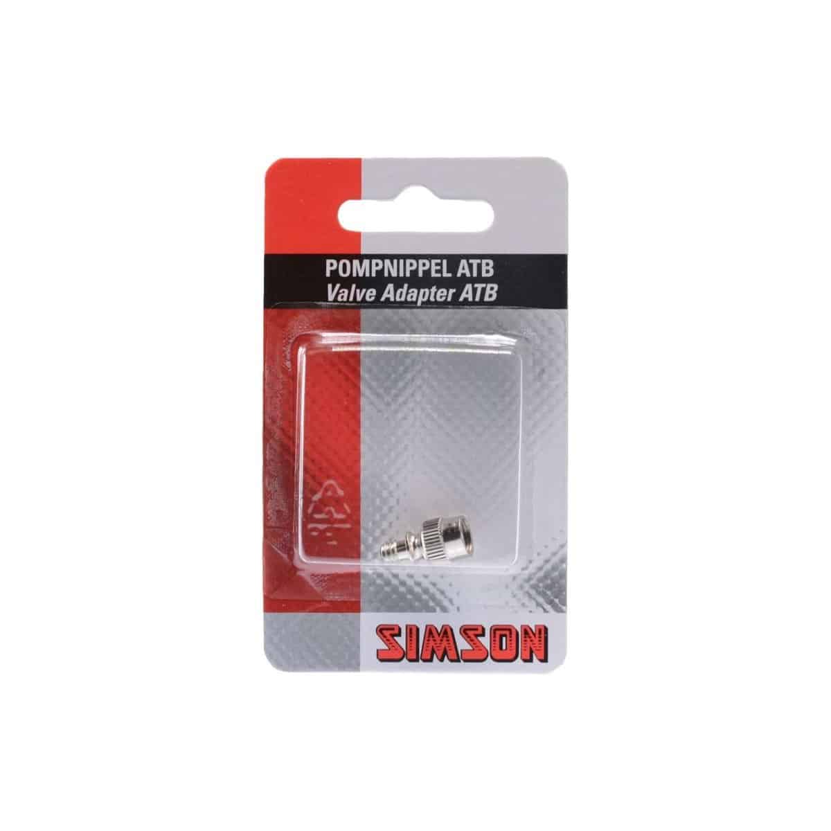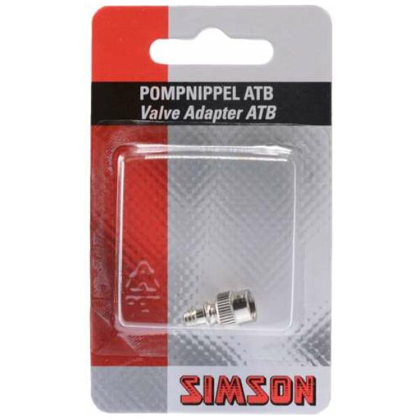 Met de Simson Pompnippel ATB kan een band met een ATB ventiel (autoventiel) opgepompt worden met een gewone fietspomp. De Simson Pompnippel is gemaakt van messing voor een optimale levensduur. Draai de Simson pompnippel op het ATB ventiel waarna de band opgepompt kan worden met een gewone fietspomp. Verwijder na het oppompen de pompnippel van het ventiel. De Simson Pompnippel ATB wordt geleverd per 1 stuks.