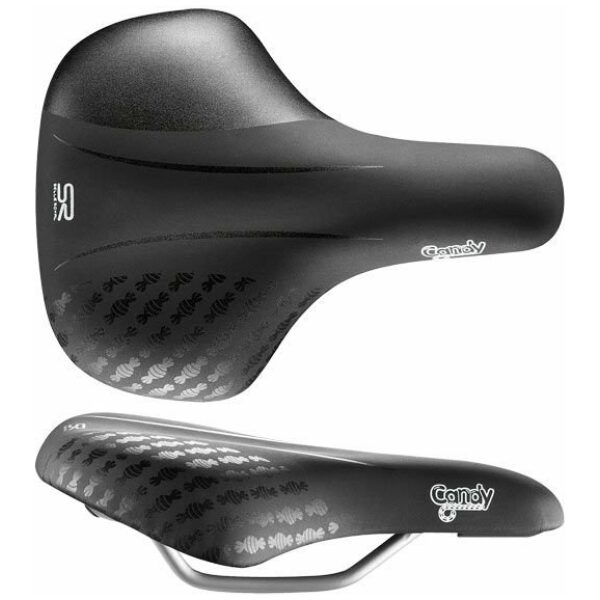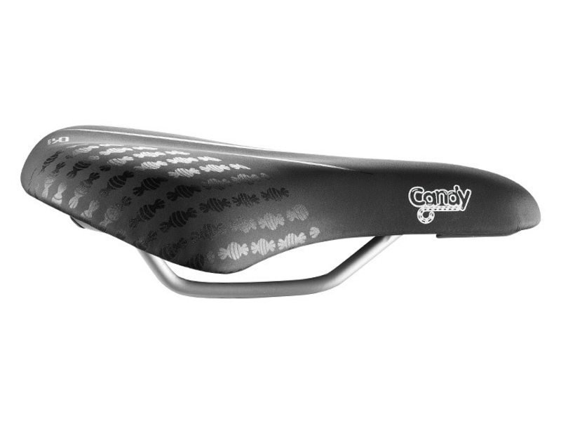 Candy is een zadel dat geschikt is voor meisjesfietsen met wielen van 16, 20 of 24. Het zadel is opgevuld met een schuimmatrix en versierd met een minimalistisch ton sur ton design. De open celstructuur van de schuimmatrix zorgt voor een hogere elasticiteit en een beter ademend vermogen. Hierdoor ontstaat een onverslijtbaar en comfortabel zadel. Het gepatenteerde clip systeem aan de achterkant van het zadel maakt het heel gemakkelijk om een Selle Royal zadeltasje of ander accessoire aan te brengen.