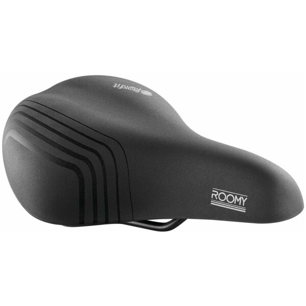 Selle Royal zadel 8VA8 Roomy Slow Fit dames Moderate zwart, clip systeem, Slow Fit Foam, Scuff guards, Classic black blasted OXE rail + scale, Classic black blasted OXE rail + scale, Slow Fit Foam is een visco-elastisch materiaal dat zich vormt naar het lichaam van de fietser en dat een gelijkmatige gewichtsverdeling garandeert. Slow Fit Foam vermindert de stoten en trillingen bij de contactpunten vergeleken met traditionele schuimvullingen. Hierdoor verbetert de bloedsomloop en de intelligente plaatsing van de gelvulling zorgt voor een lager zadelgewicht.