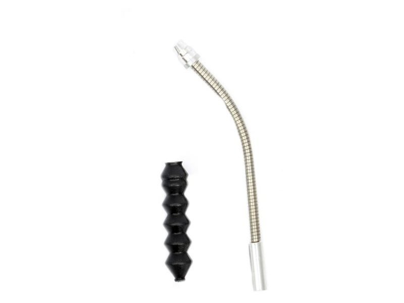 De Simson Remkabelbuis V-Brake met een flexibele bocht voor een goede aansluiting tussen de remkabel en het V-brake remsysteem. Hierdoor wordt de remkracht correct overgebracht op het V-Brake remsysteem. Sluit de buitenkabel aan op de remkabelbuis. Trek de binnenkabel van de rem door de remkabelbuis en sluit de binnenkabel aan op het V-brake remsysteem met een inbussleutel. De Simson remkabelbuis wordt geleverd inclusief stofrubber.