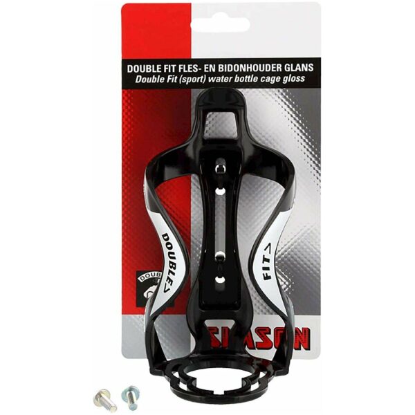 De Simson Double Fit fles- en bidonhouder houdt alle traditionele bidons moeiteloos vast tijdens de fietsrit en de gepatenteerde fleshalsopening maakt de Double Fit ook geschikt voor het veilig en slim vervoeren van PET flessen. Klik met het unieke kliksysteem de fles gemakkelijk los uit de houder om snel wat te drinken tijdens het fietsen. De Double Fit is licht van gewicht (49gr) en zeer geschikt voor de sportieve fietser. Monteer de Double Fit met behulp van een inbussleutel en de meegeleverde inbusboutjes op de fiets.