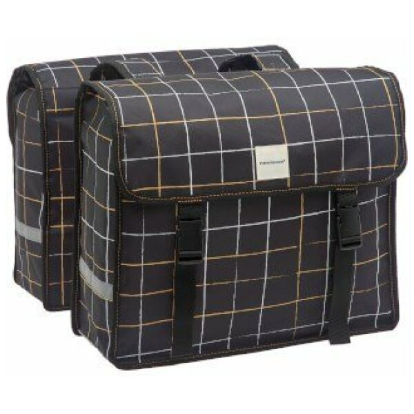 De Fiori Double is gemaakt van waterafstotend polyester, hierdoor kan het een klein regenbuitje wel hebben. De klep maak je eenvoudig en snel dicht door de klikgespen en door de reflectie ben je ook in het donker goed zichtbaar. Je kunt je snelbinders gewoon gebruiken in combinatie met de tas