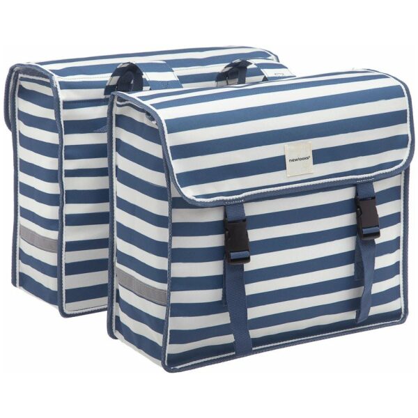 De Fiori Double is gemaakt van waterafstotend polyester, hierdoor kan het een klein regenbuitje wel hebben. De klep maak je eenvoudig en snel dicht door de klikgespen en door de reflectie ben je ook in het donker goed zichtbaar. Je kunt je snelbinders gewoon gebruiken in combinatie met de tas
