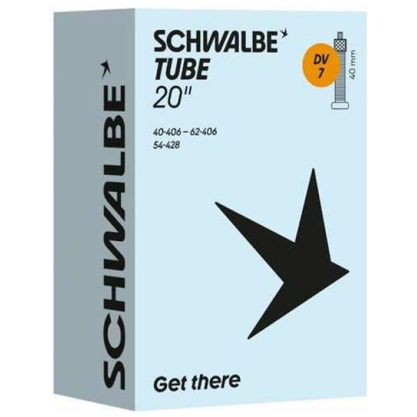 Schwalbe binnenband DV7, geschikt voor 20 inch, in de ETRTO maat 40/62-406. Voorzien van een 40mm lang Hollands/Dunlop ventiel. Schwalbe binnenbanden zijn 100% volledig recyclebaar.