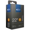 Schwalbe binnenband Standaard 22 Inch Hollands – DV8/44-484, 37-489, 28-490, 37-490, 37-501. De Schwalbe binnenbanden zijn betrouwbaar. Fietsdetaillisten waarderen hem om zijn hoge betrouwbaarheid. Iedere band wordt in de fabriek opgepompt en zo 24 uur op luchtdichtheid getest. De band houdt de luchtdruk langer vast. In de productie vereist Schwalbe een zeer hoog butyl aandeel en een zeer hoge reinheid van het materiaal. Zo houdt de Schwalbe binnenband de luchtdruk beduidend langer vast dan andere binnenbanden. Het is een groepen-binnenbandsysteem: Een Schwalbe binnenband is extreem elastisch en past op meerdere bandafmetingen. Hierdoor worden ze groepen binnenbanden genoemd. Zo past bijvoorbeeld de binnenband met nummer 19A voor bandafmeting van 27.5 inch tot 29 Inch en voor de breedte van 40 tot 62mm. Als laatste is de band 100% volledig recyclebaar. Standaarduitvoering: Hoge betrouwbaarheid, al vele jaren beproefd.