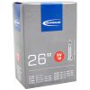 Schwalbe binnenband Standaard 26 Inch Frans – SV12/47-559, 47-571, 30-584, 35-584, 47-584, 32-590, 37-590, 44-590, 32-597. De Schwalbe binnenbanden zijn betrouwbaar. Fietsdetaillisten waarderen hem om zijn hoge betrouwbaarheid. Iedere band wordt in de fabriek opgepompt en zo 24 uur op luchtdichtheid getest. De band houdt de luchtdruk langer vast. In de productie vereist Schwalbe een zeer hoog butyl aandeel en een zeer hoge reinheid van het materiaal. Zo houdt de Schwalbe binnenband de luchtdruk beduidend langer vast dan andere binnenbanden. Het is een groepen-binnenbandsysteem: Een Schwalbe binnenband is extreem elastisch en past op meerdere bandafmetingen. Hierdoor worden ze groepen binnenbanden genoemd. Zo past bijvoorbeeld de binnenband met nummer 19A voor bandafmeting van 27.5 inch tot 29 Inch en voor de breedte van 40 tot 62mm. Als laatste is de band 100% volledig recyclebaar. Standaarduitvoering: Hoge betrouwbaarheid, al vele jaren beproefd.