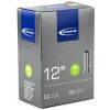 Schwalbe binnenband Standaard 12 Inch Auto – AV1/47-203, 50-203, 54-203, 62-203.De Schwalbe binnenbanden zijn betrouwbaar. Fietsdetaillisten waarderen hem om zijn hoge betrouwbaarheid. Iedere band wordt in de fabriek opgepompt en zo 24 uur op luchtdichtheid getest. De band houdt de luchtdruk langer vast. In de productie vereist Schwalbe een zeer hoog butyl aandeel en een zeer hoge reinheid van het materiaal. Zo houdt de Schwalbe binnenband de luchtdruk beduidend langer vast dan andere binnenbanden. Het is een groepen-binnenbandsysteem: Een Schwalbe binnenband is extreem elastisch en past op meerdere bandafmetingen. Hierdoor worden ze groepen binnenbanden genoemd. Zo past bijvoorbeeld de binnenband met nummer 19A voor bandafmeting van 27.5 inch tot 29 Inch en voor de breedte van 40 tot 62mm. Als laatste is de band 100% volledig recyclebaar. Standaarduitvoering: Hoge betrouwbaarheid, al vele jaren beproefd.