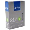 Schwalbe binnenband Standaard 20 Inch Auto – AV6/28-406, 32-406, 35-406, 37-406, 40-406. De Schwalbe binnenbanden zijn betrouwbaar. Fietsdetaillisten waarderen hem om zijn hoge betrouwbaarheid. Iedere band wordt in de fabriek opgepompt en zo 24 uur op luchtdichtheid getest. De band houdt de luchtdruk langer vast. In de productie vereist Schwalbe een zeer hoog butyl aandeel en een zeer hoge reinheid van het materiaal. Zo houdt de Schwalbe binnenband de luchtdruk beduidend langer vast dan andere binnenbanden. Het is een groepen-binnenbandsysteem: Een Schwalbe binnenband is extreem elastisch en past op meerdere bandafmetingen. Hierdoor worden ze groepen binnenbanden genoemd. Zo past bijvoorbeeld de binnenband met nummer 19A voor bandafmeting van 27.5 inch tot 29 Inch en voor de breedte van 40 tot 62mm. Als laatste is de band 100% volledig recyclebaar. Standaarduitvoering: Hoge betrouwbaarheid, al vele jaren beproefd.