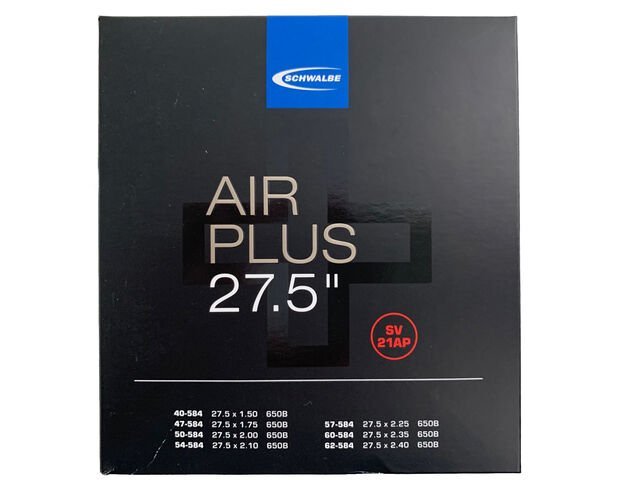 Schwalbe binnenband SV14AP Air Plus, geschikt voor 27.5 inch, in de ETRTO maat 40/62-584. Voorzien van een 40mm lang Frans/Sclaverand ventiel. Door het hoge butyl aandeel houdt de Schwalbe Air Plus binnenband de lucht beduidend langer vast. Hierdoor hoeft minder vaak bijgepompt te worden. Dankzij de dikkere wandsterkte is de Schwalbe Air Plus bijzonder robuust en daardoor zeer goed beschermd tegen lekrijden. Wanneer de Schwalbe Air Plus alsnog vervangen moet worden is deze evenals alle andere Schwalbe binnenbanden 100% recyclebaar. Ideaal voor E-Bike en Cargo bikes.