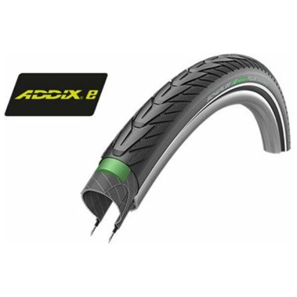 Schwalbe buitenband Energizer Plus R Zwart Addix GreenGuard TwinSkin, 28×1.75/47-622. Speciaal voor E-bikes gemaakt. De nieuwe Energizer Plus heeft een ultramodern, dynamisch tourprofiel met een glad middenstuk en sterk gediamanteerde zijvlakken. Hierdoor rolt hij licht op de straat en heeft een goede grip, ook op ongeplaveide wegen. Het speciaal voor de E-inzet gemaakte Addix E-compound, voor een maximale houdbaarheid, een lage rolweerstand en een buitengewone grip, ook bij een hoge snelheid. Betrouwbare lekbescherming in het alledaags gebruik wordt gegarandeerd door de beproefde, 3 mm dikke GreenGuard anti-leklaag. Uiteraard is de nieuwe Energizer Plus ECE-R75 gecertificeerd. De Marathon Energizer Plus is geschikt voor E-bikes tot 50km/u. Voor deze snelle E-bikes – S-pedelecs met toelating, verzekering, trapondersteuning, boven de 25km/u is deze speciale goedkeuring van de banden noodzakelijk. Het advies is dan ook om voor deze E-bikes de E-bike banden met de in Europa geldige ECE-R75 goedkeuring te gebruiken.