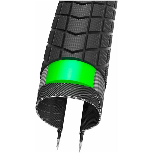 Schwalbe buitenband Big Ben Plus R Zwart, 28×2.15/55-622. De Big Apple heeft een broer! Het comfort is gelijk, maar het profiel en ook de optiek zijn duidelijk nog meer aanwezig. Het design heeft Schwalbe naar een ‘normale’ bandafmeting omgezet. De robuuste 3mm dikke GreenGuard anti-leklaag en de versterkte zijwand maken deze stevige Balloonbikeband Big Ben Plus tot een echt werkpaard. Hij is ECE-R75 goedgekeurd, comfortabel en sterk. De perfecte keuze voor cargo bikes en alle soorten E-bikes. De Big Ben Plus is geschikt voor E-bikes tot 50km/u. Voor deze snelle E-bikes – S-pedelecs met toelating, verzekering, trapondersteuning, boven de 25km/u is deze speciale goedkeuring van de banden noodzakelijk. De Big Ben Plus heeft het in Europa geldige ECE-R75 keurmerk voor snelle E-bikes.